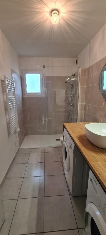 Il a remplacé la faïence de l'espace plan vasque, douche et wc.